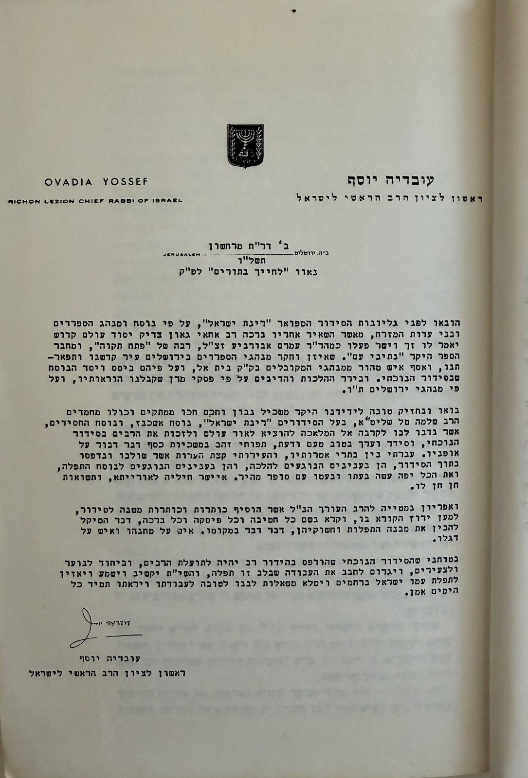 ייתכן שסידור זה – שנישא שנים בידיו של מרן – ימשיך לעורר דיון גם עתה, שנים לאחר פטירתו, ולהזכיר כי גם בין דפי התפילה השגרתית מסתתרים לעיתים פרקים של היסטוריה.